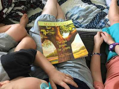 It's the same with me. When I open my arms to the sleepy boy at the top of the stairs,... when I share my space with the pre-teen who wants to get his math done before breakfast... when I put down my reading to listen to a young heart... when I put aside my afternoon project to invite my youngest two to snuggle in for a book...